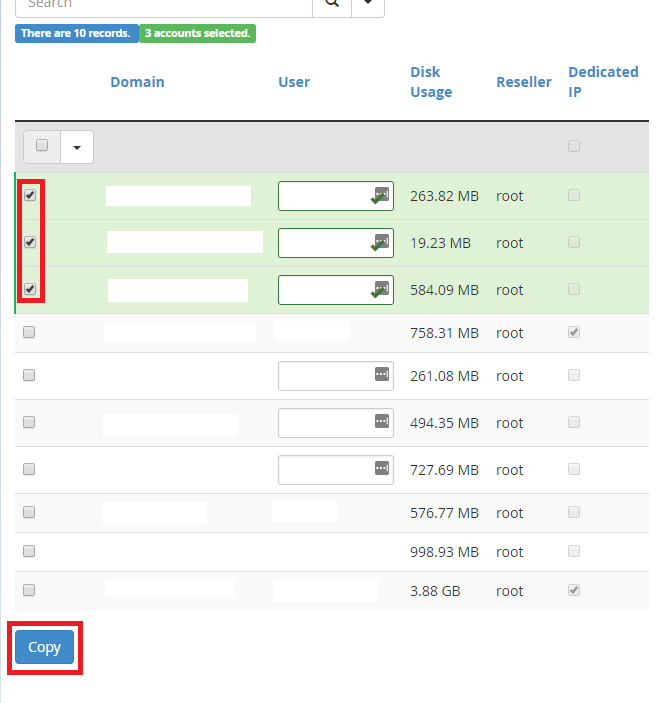 You can also click the ‘Packages’ tab and select any custom Packages to transfer over as well. This would include settings for accounts such as quota, number of databases etc.