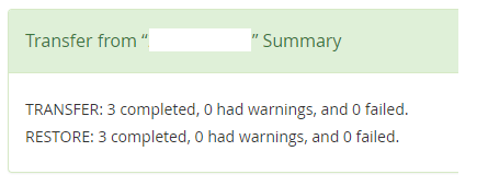 If there are any errors or warnings they should be visible here. Depending on the nature of the errors or warnings, some further actions may be required. If any adjustments have been made server-side, the transfer tool can be run again. Select the option to "Overwrite" for the accounts that were having difficulties.